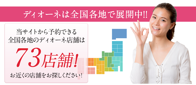 ディオーネは、北海道から九州の全国に70店舗以上を展開しています。