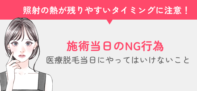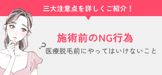 この記事では、医療脱毛の前日〜当日〜施術後に「やってはいけないこと」を時系列でご紹介。