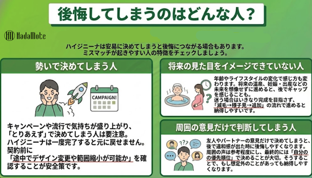 ハイジニーナで後悔しやすい人の特徴