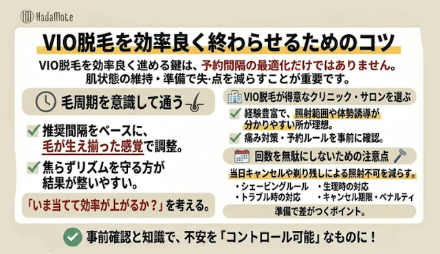 VIO脱毛を効率良く進める鍵は、予約間隔の最適化だけではありません。