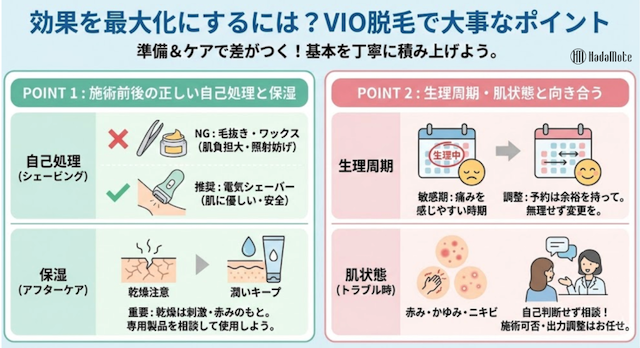 VIOは生理周期の影響を受けやすく、時期によって痛みの感じ方や肌の敏感さが変わることがあります。