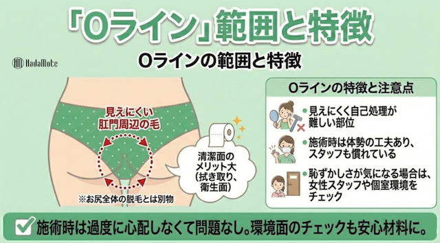 Oラインは見えにくい肛門周辺の毛を指す部位です。