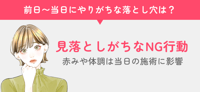 ここでは施術前に特に多いNG行動を、理由とセットで確認していきましょう。