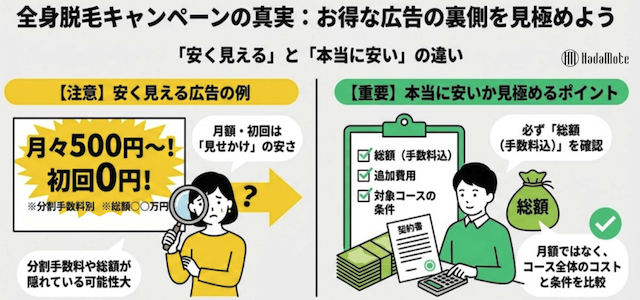 全身脱毛のキャンペーンは、入口の価格が魅力的に見えます。
