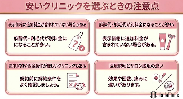 安いクリニックを選ぶときの注意点