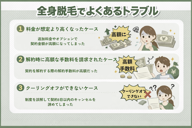 また、全身脱毛の基本を理解していないとトラブルに発展しやすいことも。