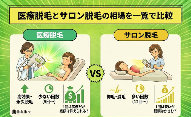 医療脱毛とサロン脱毛の相場を一覧で比較
