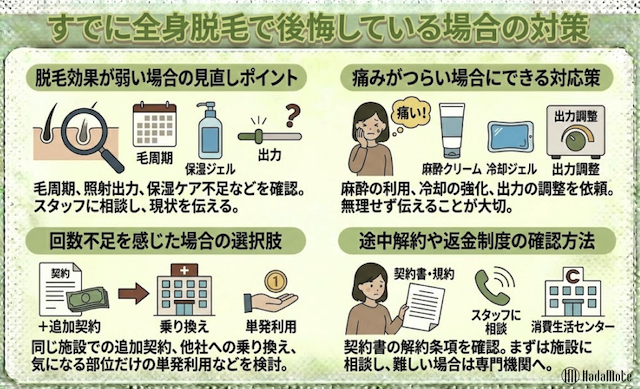 すでに全身脱毛で後悔してしまった時の処法
