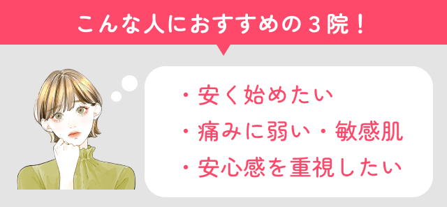 「どこを選べばいいのか決めきれない…」という方のために、最初に3つのタイプ別おすすめ院をまとめました。