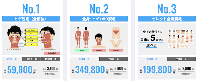 ここでは、メンズリゼ京都河原町院での脱毛料金と人気プランをご紹介。