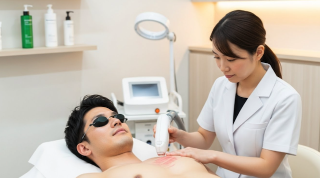 メンズリゼの公式情報や一般的な医療脱毛の知見では「医療レーザーは成長期の毛に作用するため、複数回に分けて照射することで徐々に毛量を減らしていく」仕組み。